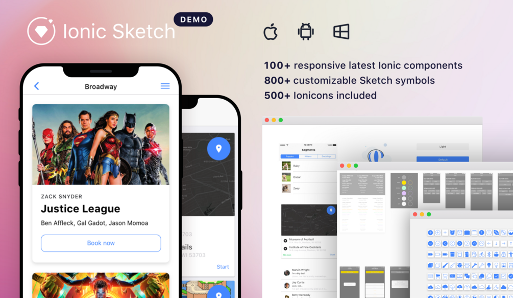 iOS, Android and Windows included. Compatible with Ionic 7/6/5/4/3 and Sketch 70+